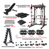 The Multi Function Smith Machine J009, Dual Grip Plates, Dumbbells, Bench & Gym Accessories is a complete strength training solution designed for home gyms and personal training studios. This multifunctional setup includes Dual Grip Rubber Plates, a 7ft 20kg barbell with one pair of collars, Adjustable Bench A8007, 20mm gym flooring tiles, a yoga mat with grommets, and an Ab mat. Ideal for guided Smith machine exercises, free-weight workouts, functional training, and core strengthening, it provides versatility and safety in a compact footprint.
